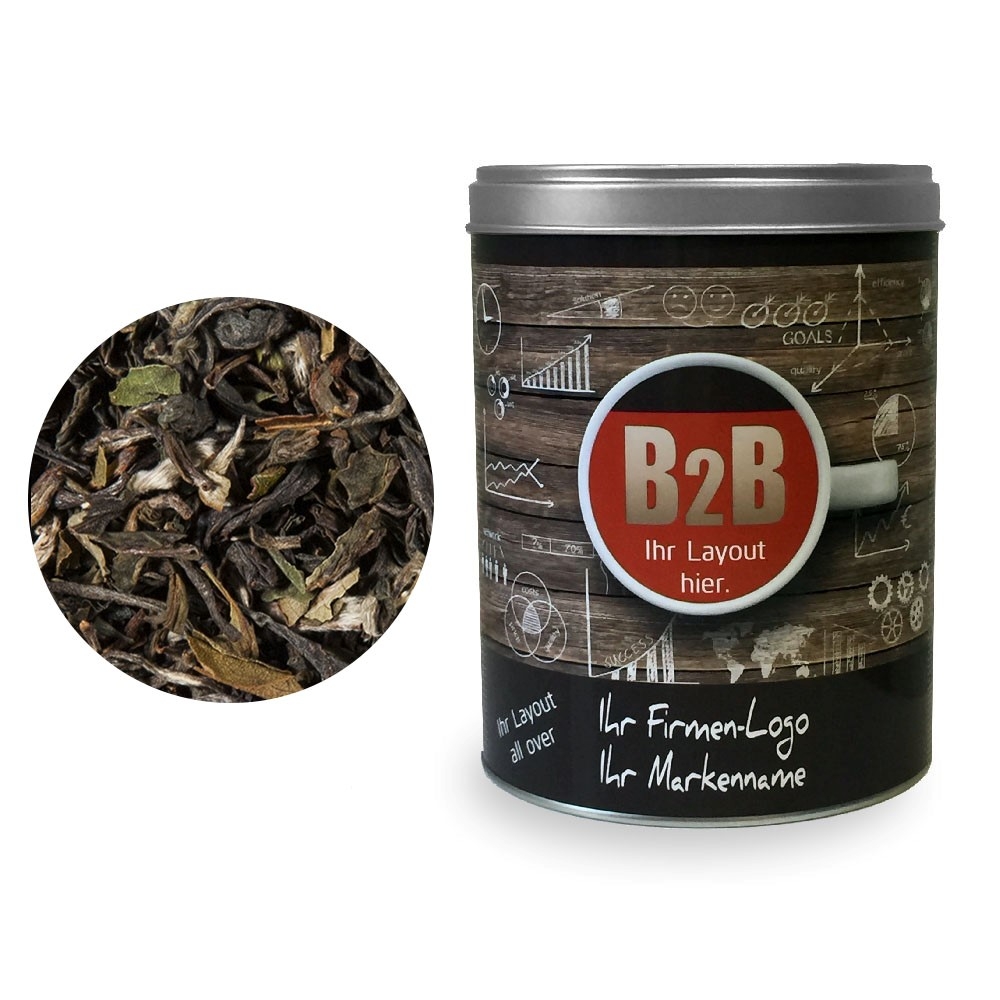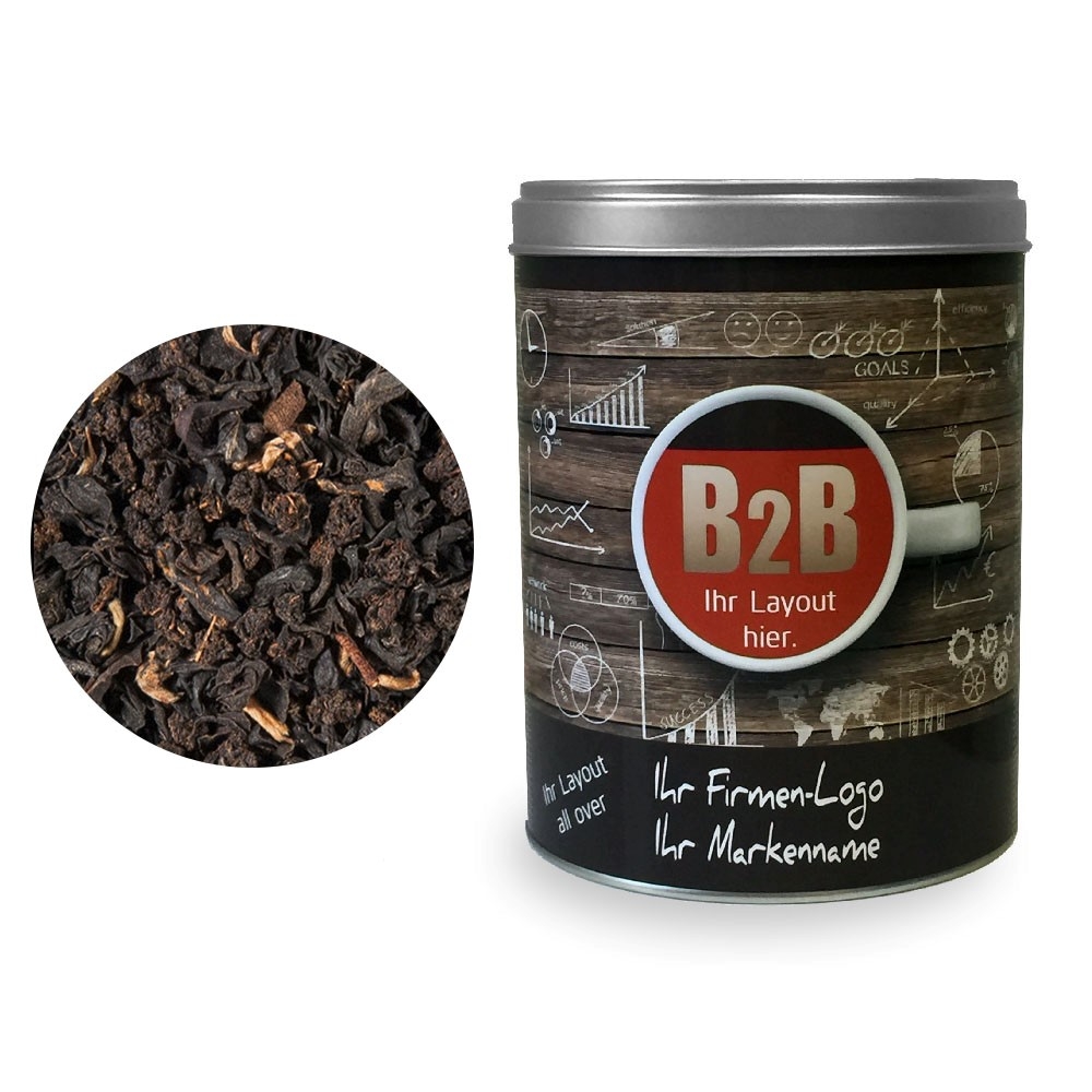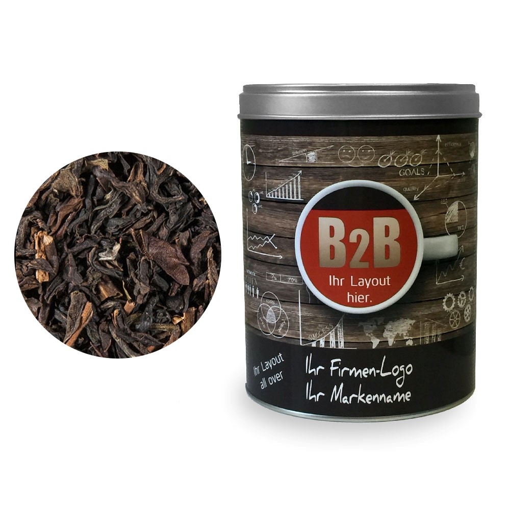 Artikel-Nr: HLSD150105385Tee als Werbegeschenk aus der YuboFiT® Tee Manufaktur. Eine köstliche Broken-Mischung nach typisch englischer Rezeptur. Ceylon-Tees aus ausgewählten Gärten fügen sich zu einer gelungenen Mischung und bieten nicht nur am frühen Morgen großen Genuss.