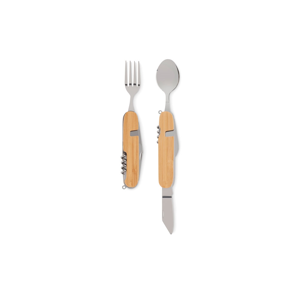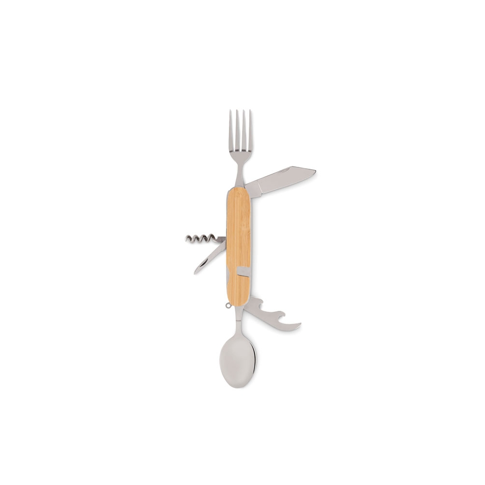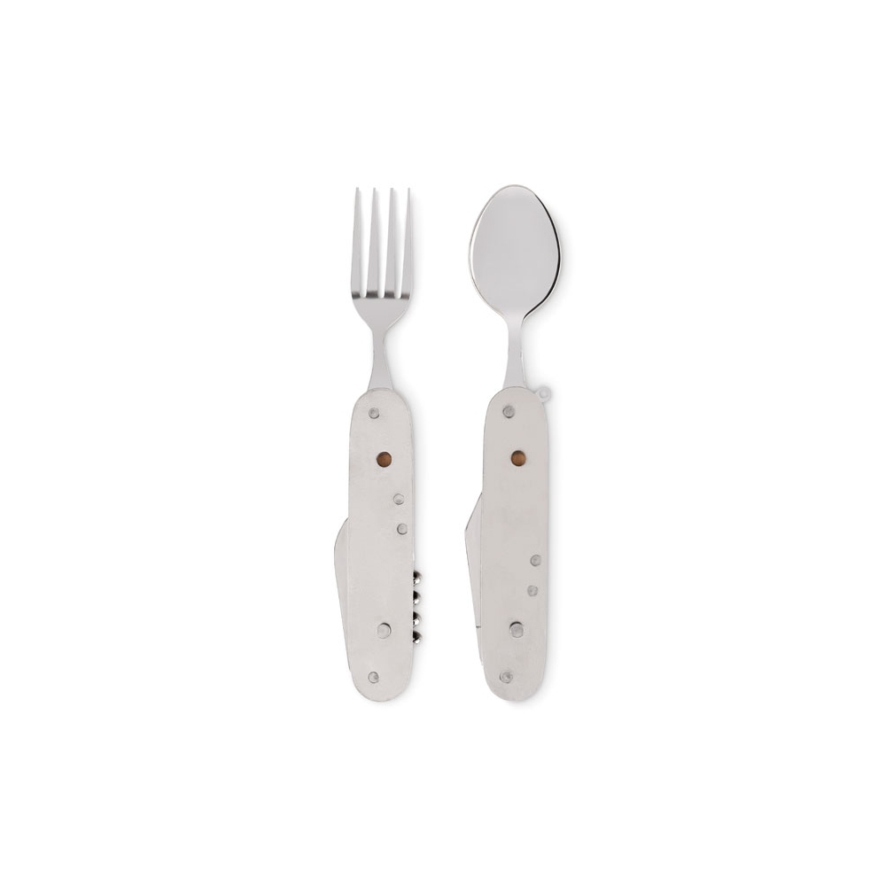 Artikel-Nr: 688ECO101Kompaktes Reisebesteck mit 7 Funktionen: abnehmbarer Löffel und abnehmbare Gabel, Messer und Dosenöffner mit Sicherheitssperre, Korkenzieher mit 4 Spiralen, Kapselheber, Schraubenzieher (2mm). Rasiermesserscharfer Schliff. Griff aus rotem ABS. Metallteile aus rostfreiem Edelstahl 3CR13. Alle Komponenten sind verschraubt und nicht geklebt. Lieferung in einem schwarzen, dicken Nylonetui.