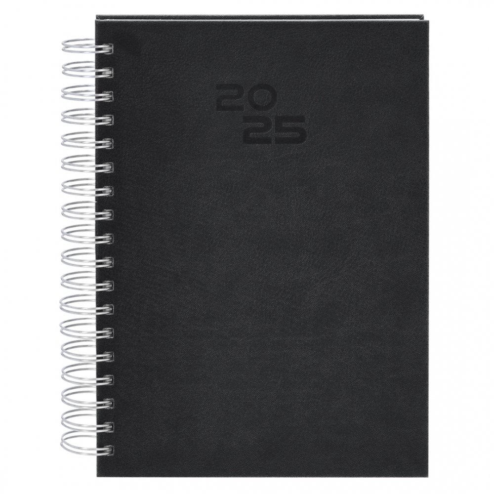 Ringbuch-Tagebuch im A5-Format aus weichem und strapazierfähigem PU-Leder, mit Hartdeckeln. Inklusive Präsentationsbox aus Kraftpapier. Tagesseitendesign und Seiten mit ausgestanzter Ecke. In 2 Sprachen: Spanisch und Englisch.