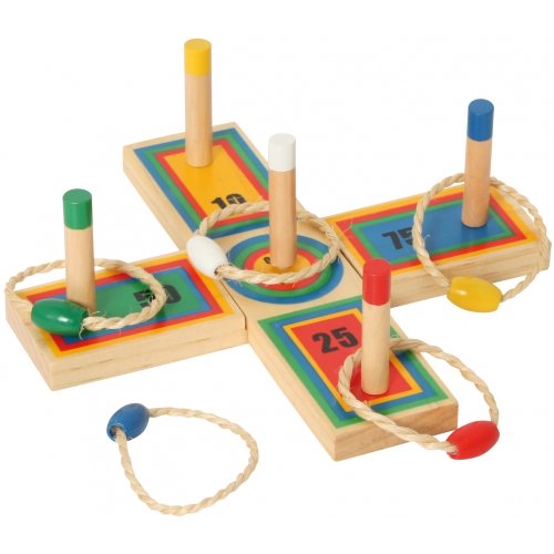 Das zerlegbare Kreuz ist aus Holz. Die Wurfringe sind aus Sisalseil. Im Schiebedeckelkasten! Spielgröße: 19 x 19 x 6 cm. Achtung! Nicht geeignet für Kinder unter 36 Monaten.
