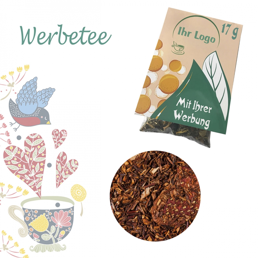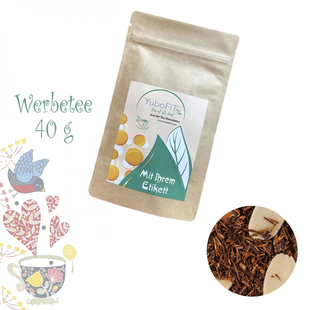 Artikel-Nr: HLSH115086Marken-Tee als Werbegeschenk aus der YuboFiT® Tee Manufaktur. Auf der Himbeerwolke 7. Eine zauberhaft sanfte Rooibosmischung mit Himbeeren und der himmlischen Frische von Zitronengras