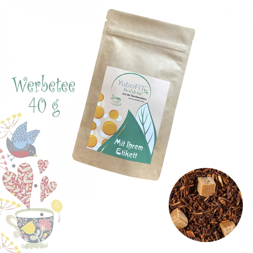 Artikel-Nr: HLSN40102982Tee mit Logo aus der YuboFiT® Tee Manufaktur. Milde Orange verleiht dem Rooibos Fruchtigkeit