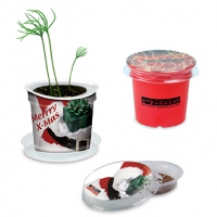 Bringen Sie Nachhaltigkeit in Ihre Werbebotschaft! Im Deckel des individuell bedruckbaren Töpfchens befindet sich Fichtensamen, der Ihren Kunden nach kurzer Zeit eine kleine, heranwachsende Fichte beschert. Preise inkl. Tampondruck 1-c zzgl. Vorkosten. Größe: Höhe 5 cm Ø 6 cm