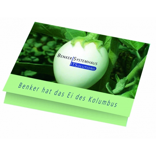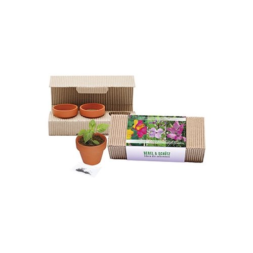 Artikel-Nr: 449001305Die handgefertigte Tonkugel mit dem Samen ist wirklich ein Naturwunder. Sie wird lediglich auf die Blumenerde gelegt und gewässert. Schon bald fangen die Samen an zu sprießen und kleine Pflanzen entstehen. Auf der Rückseite des Headers befindet sich die Pflanzanleitung, auf der Vorderseite ist Platz für Ihren Werbeeindruck im Standardmotiv ab 250 Stück. Auch eine eigene Gestaltung des Headers ist bereits ab 250 Stück möglich.