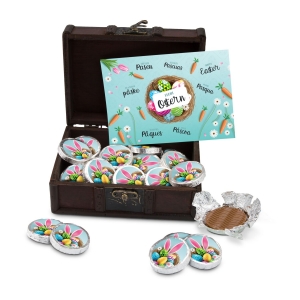 Geschenkartikel / Präsentartikel: Osterschatz, Schatztruhe mit 24 Vollmilch-Dublonen