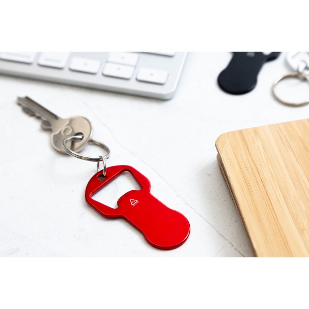 Artikel-Nr: AND800336-10Schlüsselanhänger aus recyceltem ABS in Form eines Flaschenverschlusses mit integriertem Flaschenöffner.