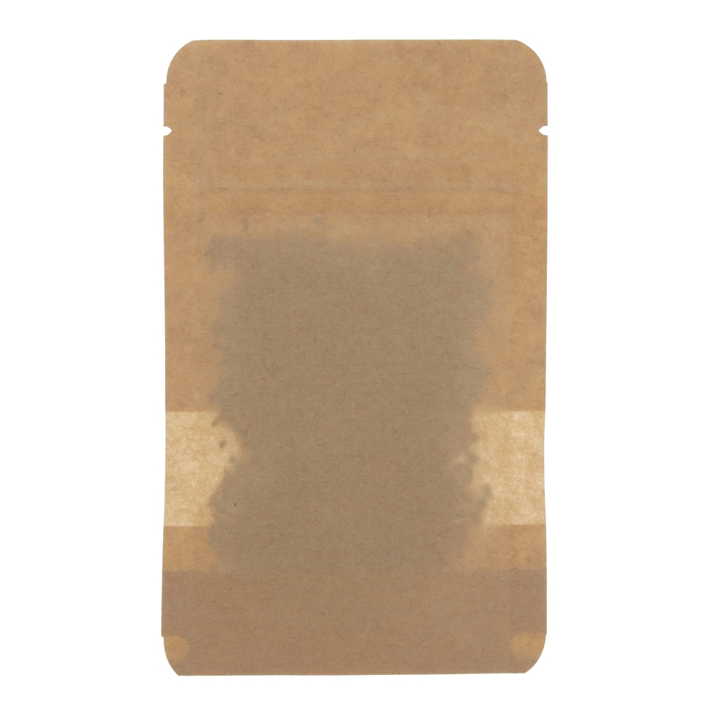 Verpackung: Standboden-Frischebeutel, Kraftpapier, braun, aroma-verschweißt