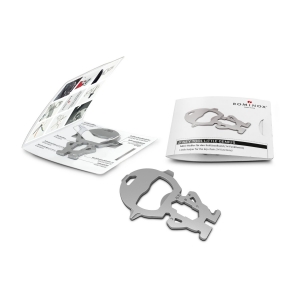 Praktisches und ausgefallenes Multitool aus Edelstahl in Form eines mechanischen Bullen. Mit 16 Funktionen, unter anderem: Schlitz- und Kreuzschlitzschraubendreher, Sechskantschlüssel in verschiedenen Größen, Lineal, Dosenöffner und Flaschenöffner. Darüber hinaus verfügt es über einen Karabiner für den einfachen Transport. Präsentiert in einer recycelten Papiertüte.