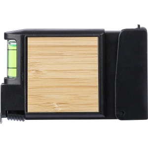 ABS Maßband mit Bambusdetails und Skala. Länge 3 Meter. Enthält 5 Bits zur Verwendung als Schraubendreher. 12 mm Metallsplitter. Einzeln verpackt in braunem Karton.