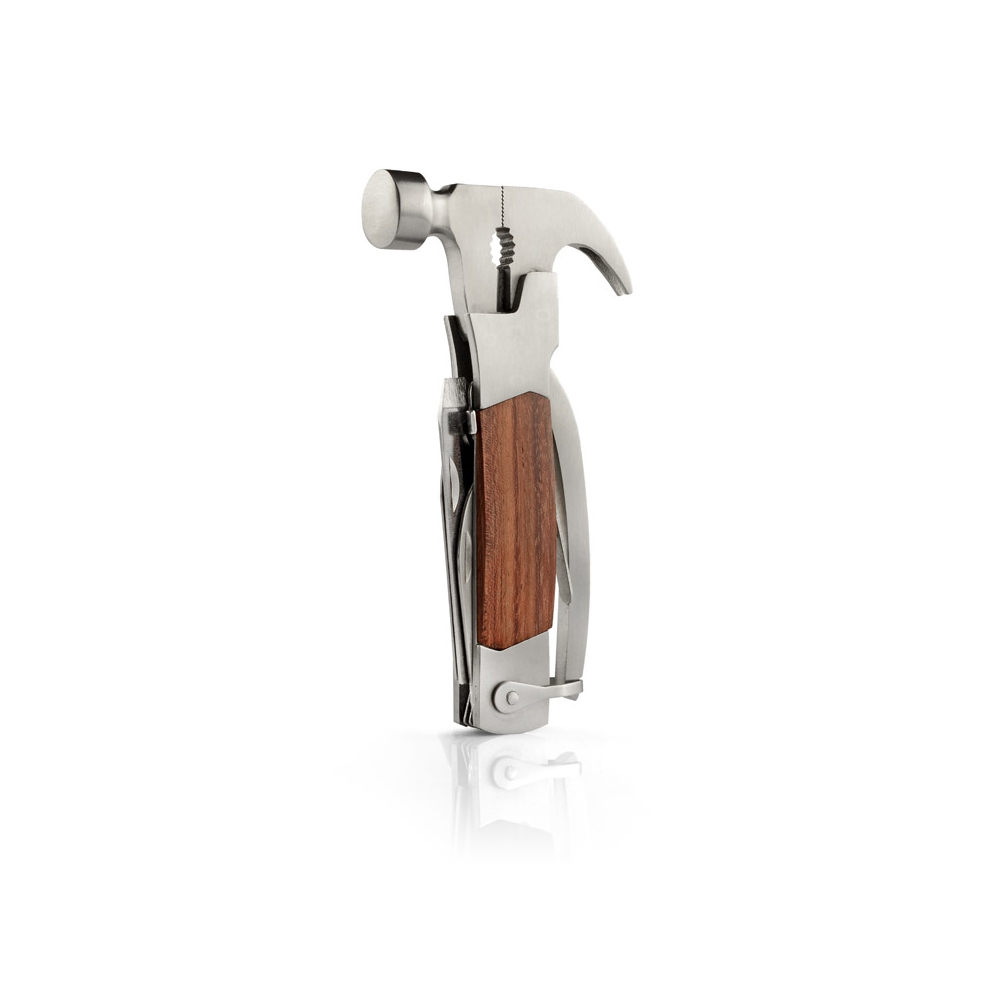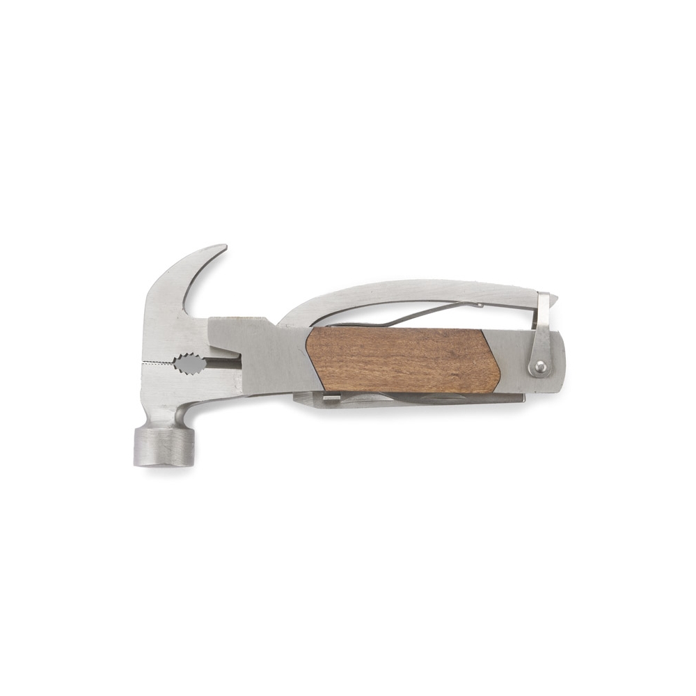 Multitool der Nature-Linie mit widerstandsfähigem Gehäuse aus Edelstahl und Bambusgriff. Mit 13 Funktionen, darunter Hammer und Nagelzieher, Messer, Nagelknipser, Kreuzschlitzschraubendreher, Feilenöffner und Zange. Passendes PU-Armband und präsentiert in einer individuellen Box mit Kraft-Design.