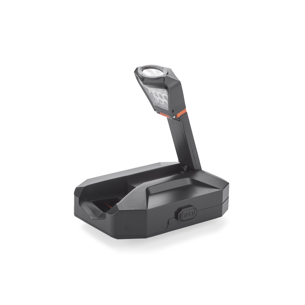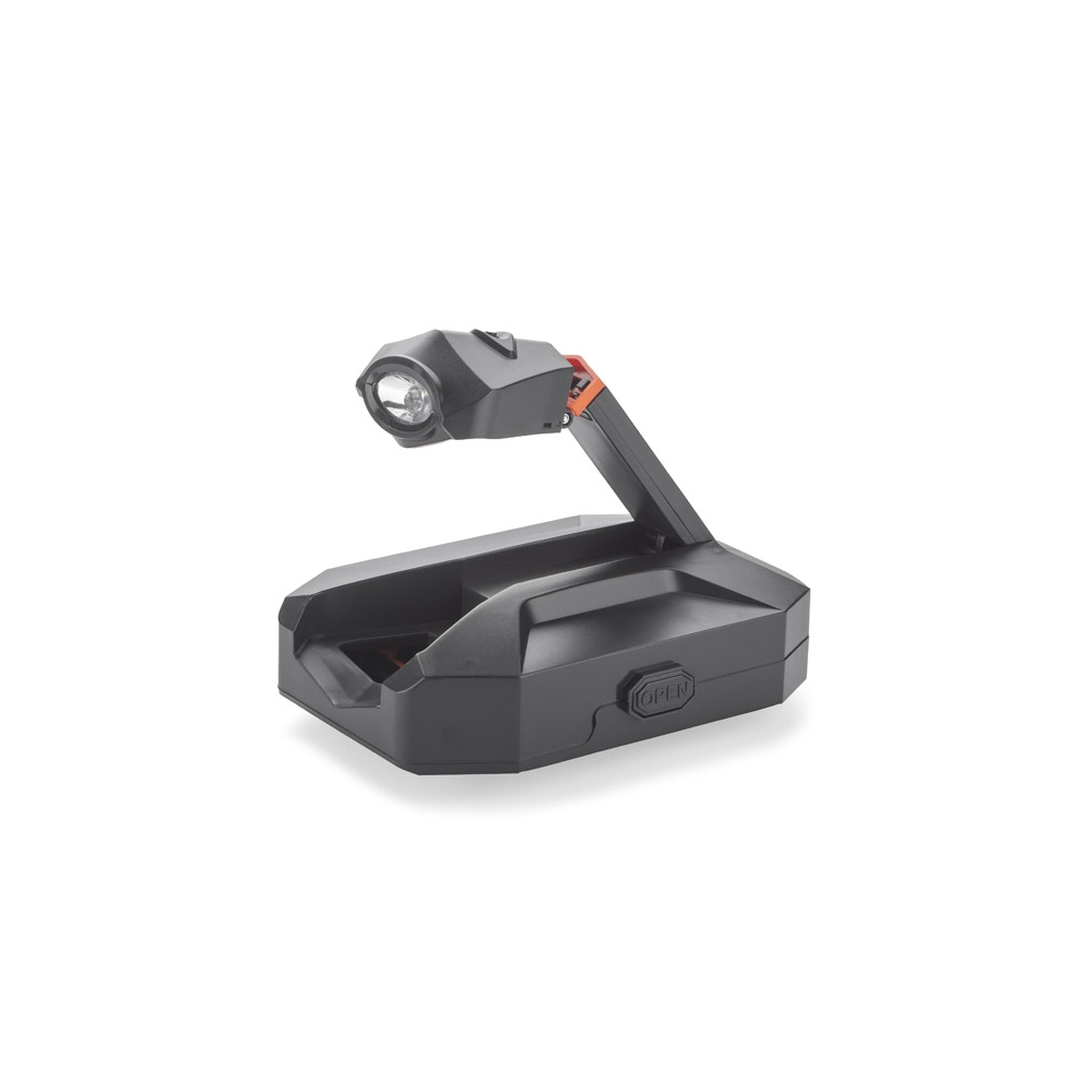 Multifunktionswerkzeug-Set ETI verbirgt seine Funktionalität im Inneren einer Taschenlampe. In dem Innern der Taschenlampe befinden sich die nützlichsten Werkzeuge wie: Schraubenzieher mit einem Satz von austauschbaren Bits, 3 Inbusschlüssel, ausziehbare Klinge, zwei Präzisionsschraubendreher, Maßband und Zangen. Das interessanteste Element des Satzes ist eine Leuchte mit zwei Lichtarten, die man als ein stationäres Licht verwendet kann, indem man einen faltbaren Arm auszieht. Zusätzlich kann die Lampe von der Basis lösen und auf dem Set in der Bar enthalten ist fixiert, wodurch ein komfortable Scheinwerfer zu erhalten.