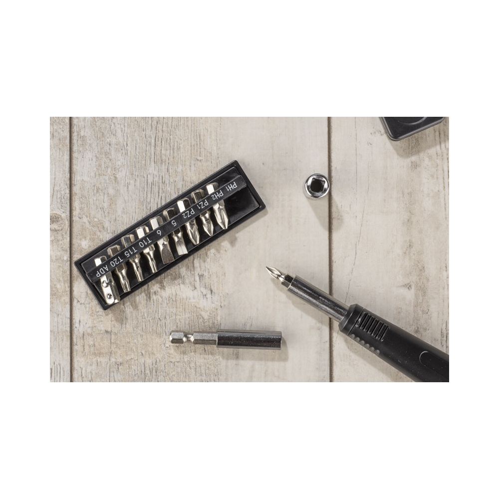Bit-Schraubendreher in schwarz mit Ratsche und 12 Bits