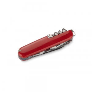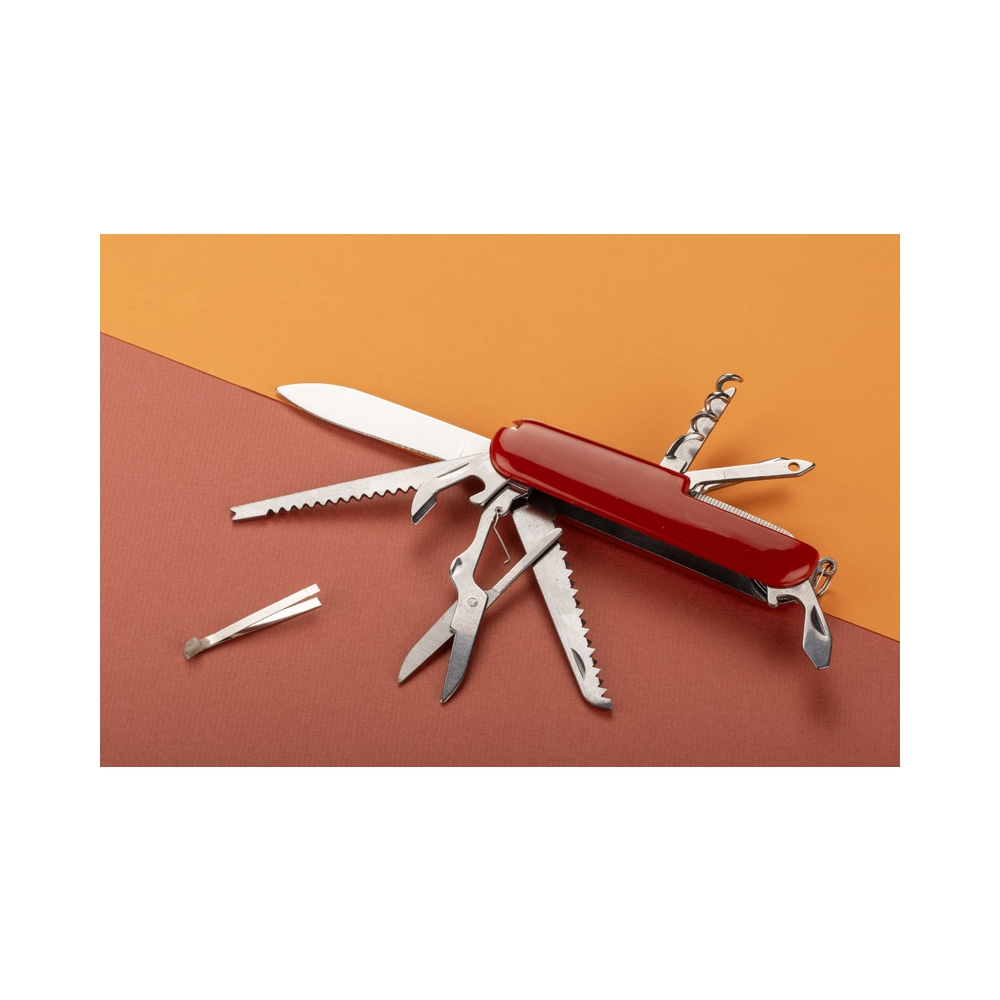 14-teiliges Taschenmesser aus Edelstahl bestehend aus: Dosenöffner, Schere, Angelhakenentferner, Fischentschupper, Sägemesser, Messer, Schlitzschraubendreher, Dosenöffner, Schlüsselanhänger, Korkenzieher, Nagelfeile, Stechbohrahle und Kreuzschraubendreher. Ihre Werbung gravieren wir auf das Messer.