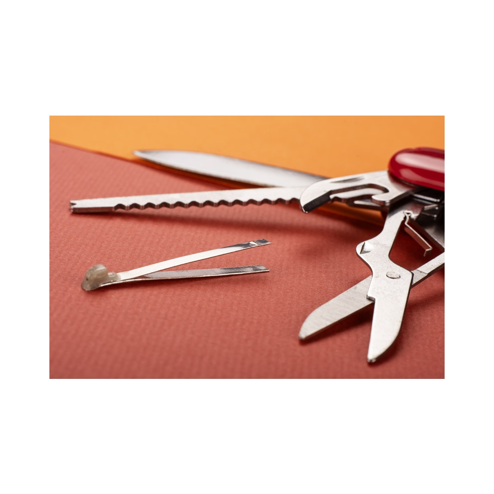 Original Schweizer Taschenmesser aus der Offizierserie von Victorinox mit ABS Griff, einer Einlage aus anodisiertem Aluminium und Tools aus 100% recyceltem Stahl. 10-teilig mit 14 Funktionen: großes Messer, kleines Messer, Dosenöffner mit kleinem Schraubenzieher 3 mm, Kapselheber mit großem Schraubenzieher 6 mm, Kreuzschlitzschraubendreher 1/2, Reibahle mit Locher und Nähahle, Isolierzange, Schere, multifunktionaler Haken, Schlüsselring, Pinzette und Zahnstocher. Inklusive Gebrauchsanweisung und lebenslanger Garantie auf Material- und Herstellungsfehler. Victorinox Messer sind ein globales Symbol für Zuverlässigkeit, Funktionalität und ...