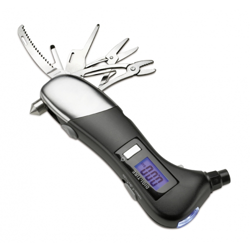 Artikel-Nr: 34251481Reifendruckmesser mit Werkzeug, LED-Taschenlampe, Notfallhammer und Warnlampe. Batterien inklusive. Eine Werbeanbringung ist auf dem Griff und dem Kunststoff möglich.