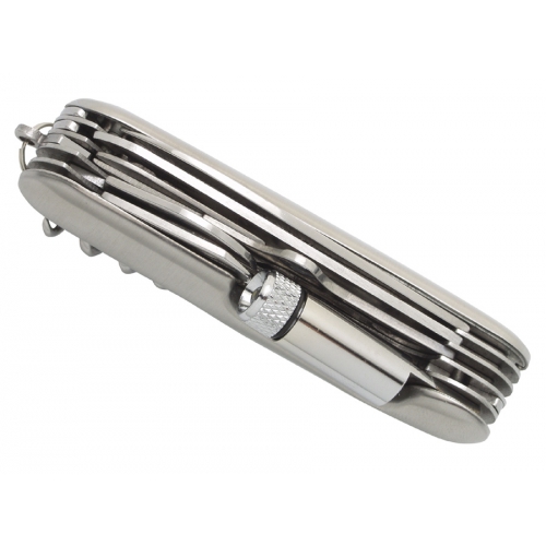 Artikel-Nr: XND221431Massives Tool mit 13 Funktionen. Im 1680D Etui sowie Geschenkbox verpackt. Aluminiumgehäuse, die Tools aus Edelstahl. Zange, Messer, Dosenöffner, verschiedene Schraubendreher uvm.