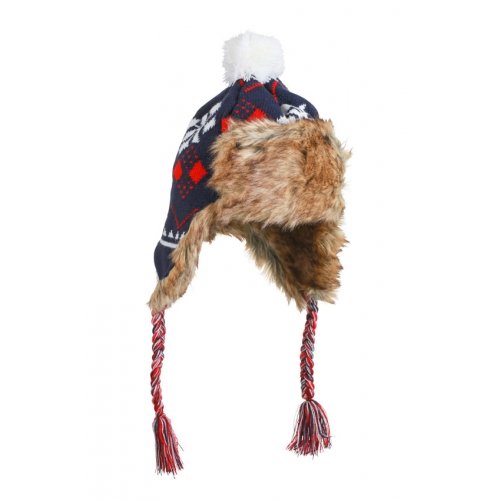 Material: Oberstoff: 100% Polyacryl, Futterstoff: 100% Polyester, Kunstfell: 100% Polyester Farben: navy / white / tomato, white / tomato / navy, white / azur / tomato, silver / maroon / tomato, black / white / tomato Größe: Einheitsgröße