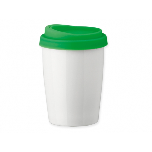 350ml Edelstahltasse, innen mit Kunststoff ausgekleidet, Deckel mit Schiebeöffnung. Farbe: grün Maße (cm): 12 x 8 x 18 Gewicht (g): 245 Druckfläche (mm): 35 x 35