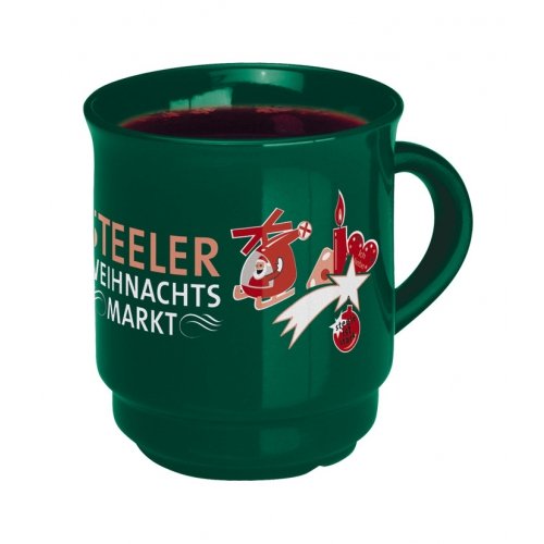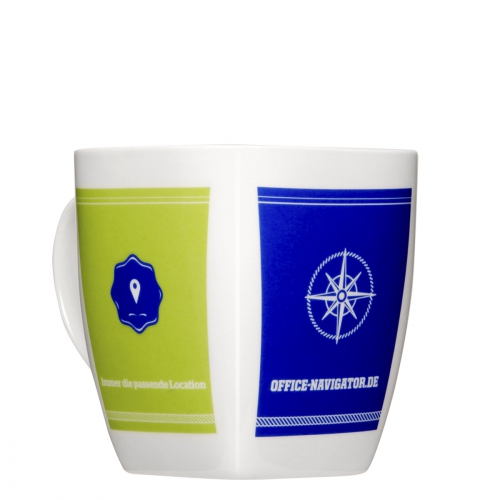 Die Jumbotasse ist der Klassiker schlechthin. Für Viel-Kaffeetrinker ist die Tasse ideal geeignet. Mit ihrer Füllmenge von bis zu 0,4 Liter können im Büroalltag auch längere Meetings angegangen werden. Zudem bietet die Jumbotase viel Fläche für Ihre Werbeaussage.