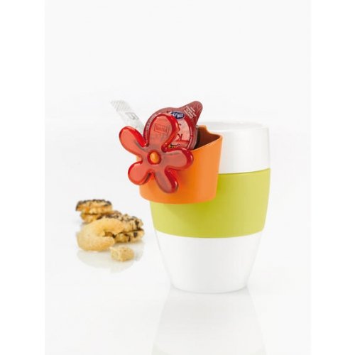 Sag‘ es durch die Blume. Das farbenfrohe Tassenutensilo wird einfach am Tassenrand eingehängt und serviert Teebeutel, Zuckerwürfel, Kaffeemilch und Kekse zusammen mit einem blumigen Gruß. So fängt der Tag gut an!