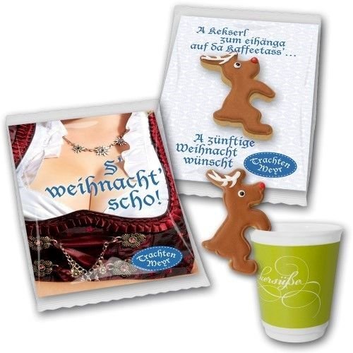 Morgenstund hat Elch am Rand. Die beiden AROMA Becher werden von Tassenutensilo RUDOLF begleitet. Der hat zwar keine rote Nase, aber dafür bringt er eine Tafel Milka Schokolade und Kaffeepulver mit. Das verspricht himmlischen Genuss auch im Büro. Inhalt: 2 AROMA Becher, 2 RUDOLF Tassenutensilos, 2x Jacobs Krönung Gold 1,8g, 2x Jacobs Krönung 3in1 18g, Milka Naps