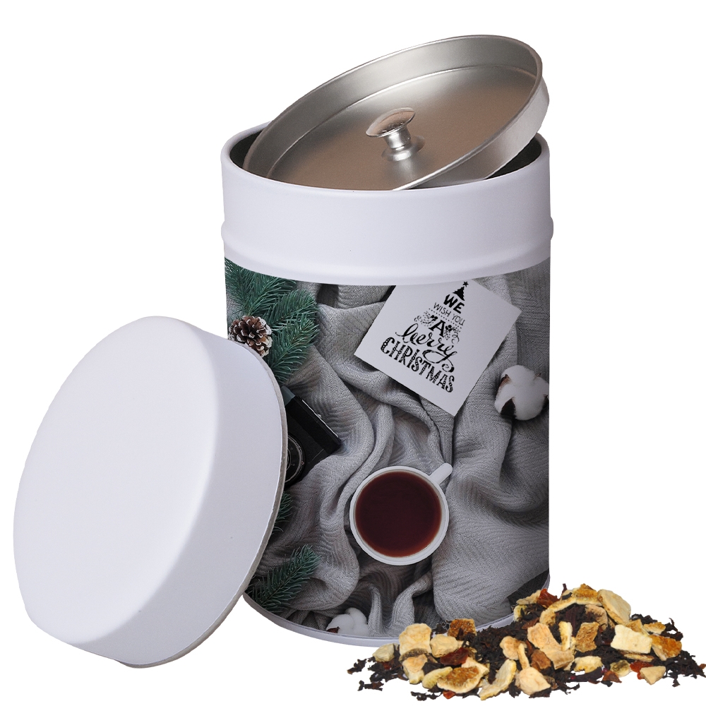 Artikel-Nr: FNM02360Geschenk-Set Premium rot mit Magnetverschluss und 4 Kraftpapierdosen Mini aus Papier. Werbeanbringung als Direktdruck in 4c individuell bedruckbar. Zutaten Verschiedene Weihnachts Teesorten, Bio und nicht-Bio: Kaminfeuer Tee: Hibiskusblüten, Ingwer, Hagebuttenschalen, Apfel, Karotten, Orangenschalen, natürliches Aroma, Lemongras, Kornblumenblüten, Chillies. - Wintertage Tee: Schwarzteemischung (Schwarztee China Op Jinjing, Hagebutten, Zimt, Nelken), Orangenschalen, Zitronenschalen. - Bratäpfelchentee: Apfel, Hibiscusblüten, Orangenschalen, Hagebuttenschale ...