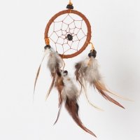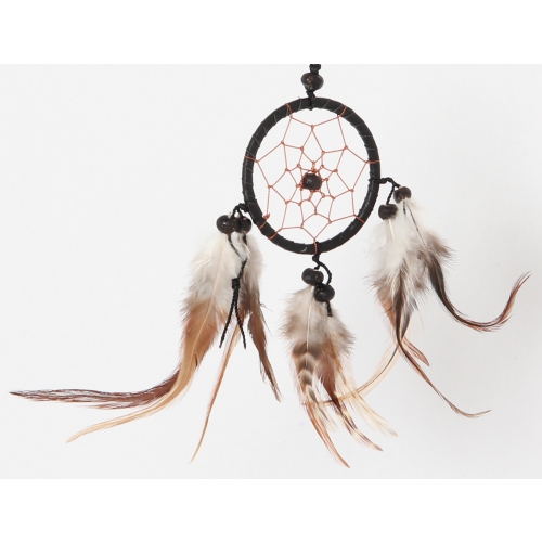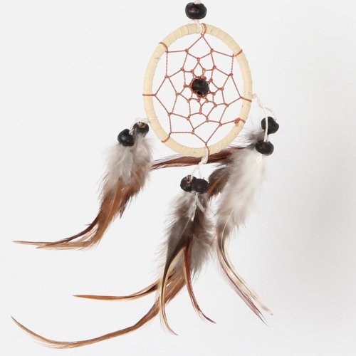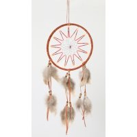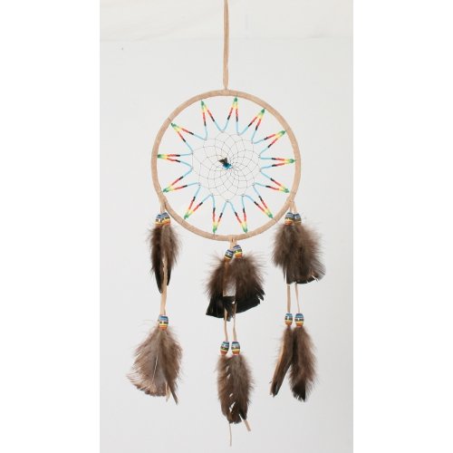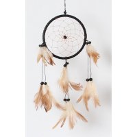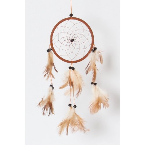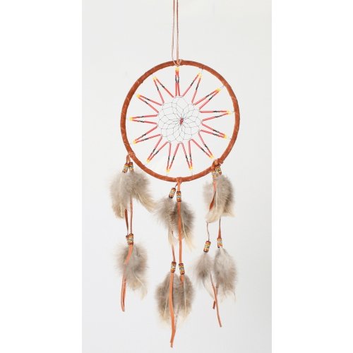 Artikel-Nr: P712Dekoratives Windspiel und hübscher Wandbehang für drinnen. Nach Überlieferung der amerikanischen Ureinwohner, zaubert der Dreamcatcher, über das Bett gehängt, schlechte Träume weg und schöne herbei. Aus Leder mit echten Federn.