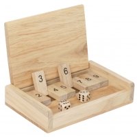 Artikel-Nr: 375110716Preiswerter Würfelspiele-Klassiker aus Holz für Klein & Groß! Mit Würfelfläche und 12 Klappen. Inklusive 2 Würfeln. Entsprechend der gewürfelten Augenzahlen werden 2 Klappen oder 1 Klappe mit der Augensumme umgeklappt. Wer nicht mehr klappen kann, verliert. Achtung! Nicht geeignet für Kinder unter 36 Monaten.