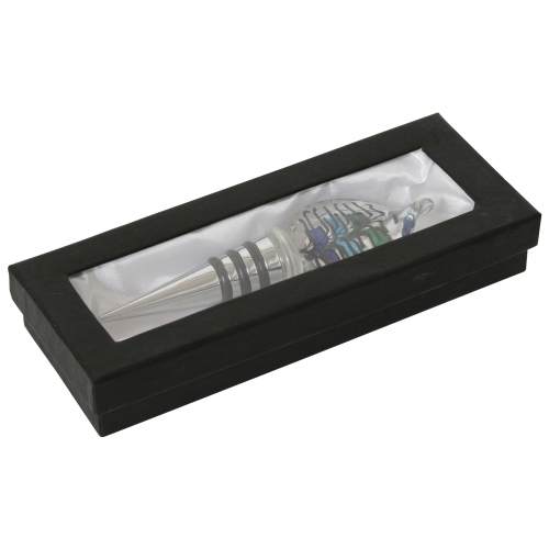 Aus Metall und Glas. Drei Gummiringe am Metallpfropfen verschließen jede Flasche fest. Größe: 13 x 4 x 2,5 cm. Viele Designs sortiert. In exklusiver Geschenkbox.