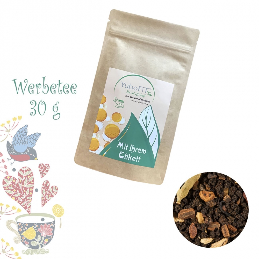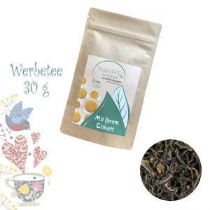 Artikel-Nr: HLSN30105538Werbetee aus der YuboFiT® Tee Manufaktur. Eine Mischung aus grünem Tee, Früchten und Blüten, geküsst von zitroniger Zurückhaltung