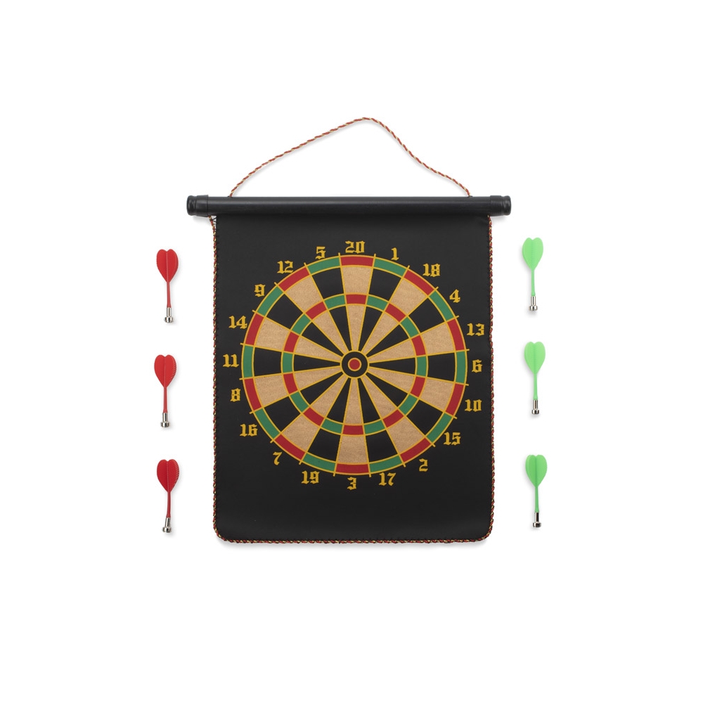 Artikel-Nr: ARD20143Ein magnetischer Dart ist ein idealer Vorschlag für Fans des Dartspiels. Es besteht aus magnetischem Material, so dass die Darts leicht an der Zielscheibe haften bleiben. Das macht das Spiel absolut sicher. Die Tafel ist doppelseitig. Er ist mit einer Schnur versehen, mit der man ihn an jedem beliebigen Ort aufhängen kann. Verpackt in einer schwarzen Röhre zusammen mit sechs Pfeilen.