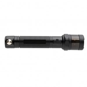 Artikel-Nr: XND513321Heavy-Duty Sicherheits-COB-Tool aus RCS-zertifiziert recyceltem Aluminium und ABS. Gesamter recycelter Inhalt: 59% bezogen auf das Gesamtgewicht des Artikels. Die RCS-Zertifizierung gewährleistet eine vollständig zertifizierte Lieferkette für die recycelten Materialien. Die Taschenlampe verwendet eine wiederaufladbare 2.000 mAh A-Grade Lithiumbatterie, so dass die Batterien nicht ausgetauscht werden müssen. Einfach über die USB-Buchse aufladen. Die Taschenlampe liefert leistungsstarke 500 Lumen und hat einen Leuchtstrahl von bis zu 100 Meter. Die LED-Leuchte verfügt über 4 Modi (100%, 50%, 30% und Blinken). Mit roter Notfall-LED, die in 3 Modi betrieben werden kann (schnelles Blinken, langsames Blinken und SOS). Mit integriertem Gurtschneider und Scheibenhammer, sowie mit Magnet zur Befestigung an einer magnetischen Oberfläche. Betriebsdauer mit einer Ladung: bis zu 2 Stunden. Wasserdicht nach IPX 4.