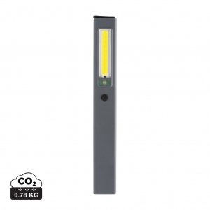 Artikel-Nr: XND513182Inspektionsleuchte im Taschenformat aus RCS-zertifiziert recyceltem ABS-Kunststoff. Gesamter recycelter Inhalt: 33% basierend auf dem Gesamtgewicht des Artikels. Die RCS-Zertifizierung gewährleistet eine vollständig zertifizierte Lieferkette für die recycelten Materialien. Die Arbeitsleuchte ist mit einer wiederaufladbaren 520mah-A-Grade Lithiumbatterie ausgestattet, so dass die Batterien nicht ausgetauscht werden müssen. Einfach über die USB-Buchse aufladen. Die Arbeitsleuchte verfügt über 220 Lumen COB-Licht und 80 Lumen LED-Licht. Mit 3 Modi: LED, COB und COB rot. Mit Clip zum Befestigen an Gürtel oder Tasche und sowie mit einem Magnet. Mit Type-C-Anschluss zum Wiederaufladen. Betriebsdauer mit einer Ladung: bis zu 3 Stunden.