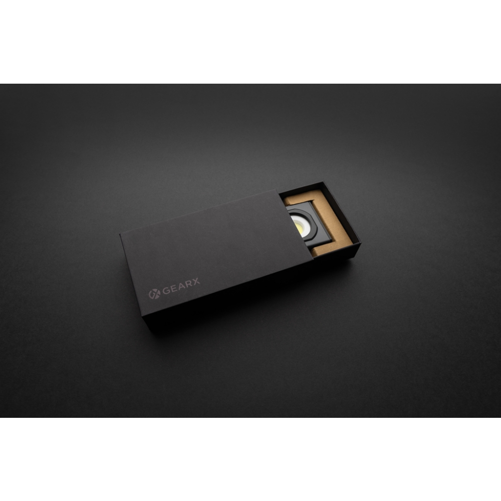 Artikel-Nr: XND513242Arbeitsleuchte im Taschenformat mit superhellem COB, hergestellt aus RCS-zertifiziert recyceltem ABS-Kunststoff. Gesamter recycelter Inhalt: 36 % bezogen auf das Gesamtgewicht des Artikels. Die RCS-Zertifizierung gewährleistet eine vollständig zertifizierte Lieferkette für die recycelten Materialien. Die Arbeitsleuchte ist mit einem wiederaufladbaren 900mAh-Lithium-Akku ausgestattet, so dass kein Batteriewechsel erforderlich ist. Einfach über die USB-Buchse aufladen. Die Arbeitsleuchte wird mit 260 Lumen COB geliefert. Mit 2 Modi: COB und COB 50%. Mit Magnet auf der Rückseite sowie mit Standfunktion. Mit Type-C-Anschluss zum Wiederaufladen. Betriebszeit mit einer Ladung: bis zu 3 Stunden.