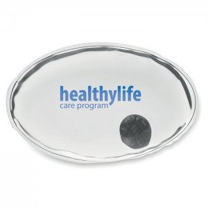 Gel-Hand-Wärmekissen. Durch Drücken des Metallplättchens erhitzt sich das Kissen. Legen Sie es nach Gebrauch in heißes Wasser und es lässt sich nach kurzer Zeit erneut verwenden.