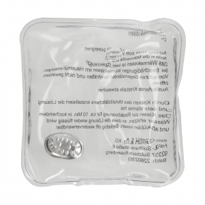 Artikel-Nr: ELT06171010-00001Gibt ca. 15 Minuten optimale Wärme bis 50°C bei Kristallisation der Flüssigkeit durch Knicken des Metallplättchens. Nach Gebrauch das Wärmekissen 10 Minuten in 100°C kochendes Wasser legen. Wiederverwendbar.