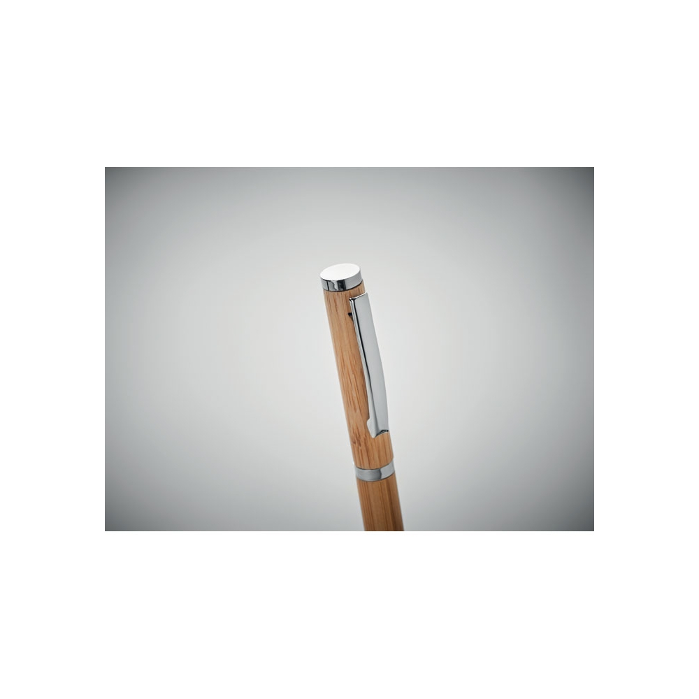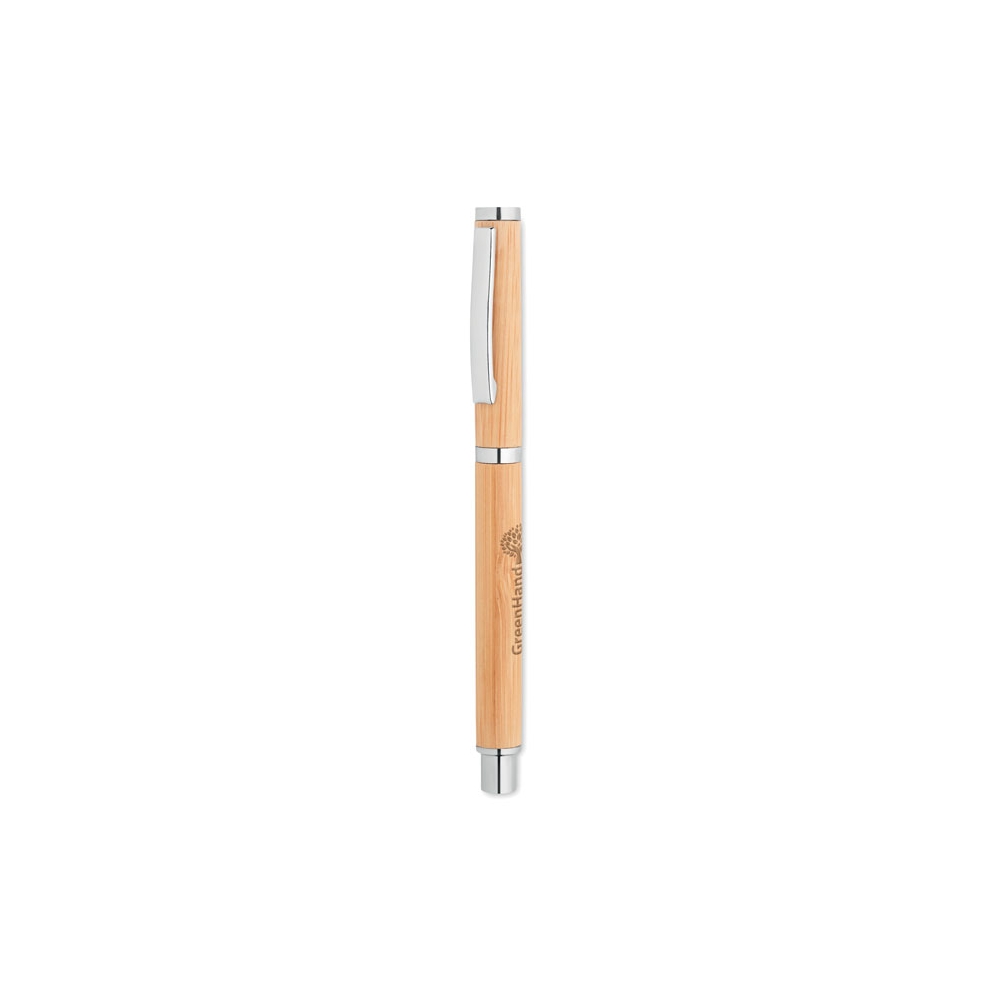 Artikel-Nr: OCBMO6558-40Gelschreiber im Gehäuse aus Bambus mit Details aus Edelstahl. Blaue Geltinte. Mit diesem Gelschreiber können Sie bei wichtigen Meetings Notizen machen. Das nachhaltige und natürliche Bambusmaterial verleiht ihm einen modernen Look. Da Bambus ein natürliches Material ist, können Farbton und Maße pro Artikel variieren. Dies kann zu Abweichungen im Ergebnis der Veredlung führen. FSC®-certified | FSC 100%, N10, FSC-C213206