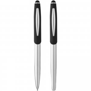 Artikel-Nr: CPO10667000Stylus Touch Pen Kugelschreiber und Tintenroller mit eleganter Silhouette, die über einen matten oberen Schaft mit glänzendem unteren Schaft aus Chrom und passenden Chromakzenten verfügen, in einem Avenue Stiftetui zum Aufschieben (Größe: 16,9 x 5,2 x 2cm).