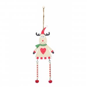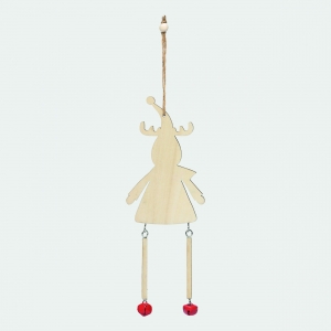Artikel-Nr: INP56-0902373Geschenk- / Baumanhänger WOODEN ELK: Schal in 3D-Optik, mit beweglichen Beinen und Juteband zum Aufhängen