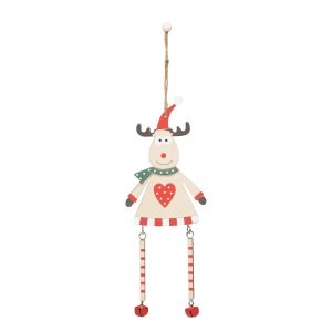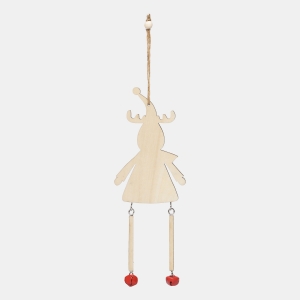 Artikel-Nr: INP56-0902373Geschenk- / Baumanhänger WOODEN ELK: Schal in 3D-Optik, mit beweglichen Beinen und Juteband zum Aufhängen