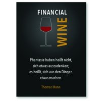 Artikel-Nr: F146408191 Flasche Financial Wine Phantasie haben heißt nicht, sich etwas auszudenken, es heißt, sich aus den Dingen etwas machen. Thomas Mann Financial Rotwein trocken, Spanien, 0,75 l. Verpackt in hochwertiger Geschenkbox.