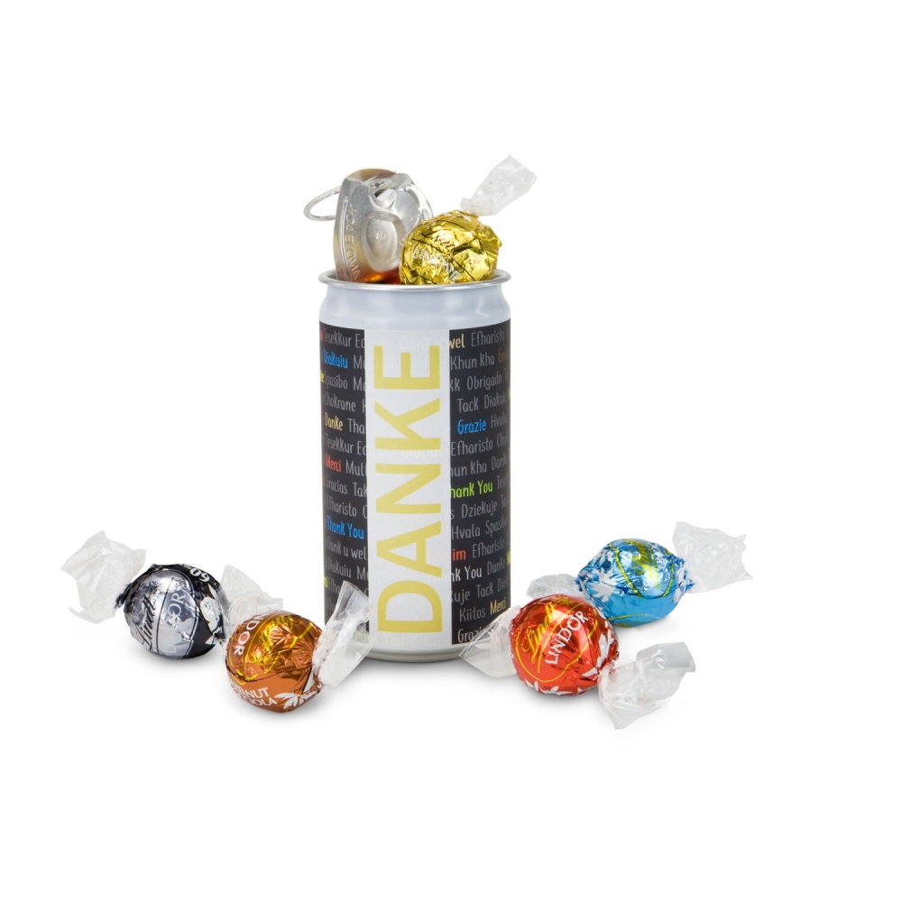 Artikel-Nr: ROP2K1679Eine Überraschungsdose für liebe Menschen, denen Sie einfach mal DANKE sagen möchten: 5 verschiedene Lindt-Lindorkugeln (je 12,5 g) in den Geschmacksrichtungen Vollmilch, Weiße Schokolade, Stracciatella, Zartbitter und Haselnuss rascheln geheimnisvoll in einer verschlossenen Dose mit "Danke”-Etikett. Wer den Deckel öffnet, wird sich garantiert über den süßen Inhalt und die nette Geste freuen.