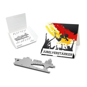 Artikel-Nr: ROP2K2107fÜberraschen Sie Ihre Handwerker mit Multifunktionstools als Schlüsselanhänger: ein ideales Geschenk nicht nur zum Geburtstag oder zu Weihnachten und nicht nur für Männer. Mit den kleinen Begleitern von ROMINOX® haben Sie die praktischsten Werkzeuge wie Schraubenzieher, Lineal oder Sechskantschlüssel immer dabei, egal ob im Alltag, im Büro oder auf Reisen. Das Key Tool Cargo Ship / Containerschiff mit 19 Funktionen kommt in einem "Große Helden”Deutschland Fan Jubelverstärker"Große Helden”-Mäppchen inkl. Funktionsbeschreibung. "An die Werkzeuge, fertig, los"! Finden Sie die perfekte Kombination aus Ihrem Lieblings Keytool und Motiv-Mäppchen. Auf Wunsch auch mit Gravur und / oder im Mäppchen im Eigendesign erhältlich.