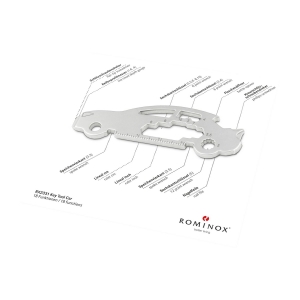 Artikel-Nr: ROP2K2106pÜberraschen Sie Ihre Handwerker mit Multifunktionstools als Schlüsselanhänger: ein ideales Geschenk nicht nur zum Geburtstag oder zu Weihnachten und nicht nur für Männer. Mit den kleinen Begleitern von ROMINOX® haben Sie die praktischsten Werkzeuge wie Schraubenzieher, Lineal oder Sechskantschlüssel immer dabei, egal ob im Alltag, im Büro oder auf Reisen. Das Key Tool Car / Auto mit 18 Funktionen kommt in einem "Große Helden”-Mäppchen inkl. Funktionsbeschreibung. "An die Werkzeuge, fertig, los"! Finden Sie die perfekte Kombination aus Ihrem Lieblings Keytool und Motiv-Mäppchen. Auf Wunsch auch mit Gravur und / oder im Mäppchen im Eigendesign erhältlich.