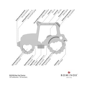 Artikel-Nr: ROP2K2102qÜberraschen Sie Ihre Handwerker mit Multifunktionstools als Schlüsselanhänger: ein ideales Geschenk nicht nur zum Geburtstag oder zu Weihnachten und nicht nur für Männer. Mit den kleinen Begleitern von ROMINOX® haben Sie die praktischsten Werkzeuge wie Schraubenzieher, Lineal oder Sechskantschlüssel immer dabei, egal ob im Alltag, im Büro oder auf Reisen. Das Key Tool Tractor mit 18 Funktionen kommt in einem "Merry Christmas”-Mäppchen inkl. Funktionsbeschreibung. "An die Werkzeuge, fertig, los"! Finden Sie die perfekte Kombination aus Ihrem Lieblings Keytool und Motiv-Mäppchen. Auf Wunsch auch mit Gravur und / oder im Mäppchen im Eigendesign erhältlich.