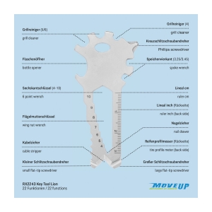 Artikel-Nr: ROP2K2101bÜberraschen Sie Ihre Handwerker mit Multifunktionstools als Schlüsselanhänger: ein ideales Geschenk nicht nur zum Geburtstag oder zu Weihnachten und nicht nur für Männer. Mit den kleinen Begleitern von ROMINOX® haben Sie die praktischsten Werkzeuge wie Schraubenzieher, Lineal oder Sechskantschlüssel immer dabei, egal ob im Alltag, im Büro oder auf Reisen. Das Key Tool Lion mit 22 Funktionen kommt in einem "Werkzeug”-Mäppchen inkl. Funktionsbeschreibung. "An die Werkzeuge, fertig, los"! Finden Sie die perfekte Kombination aus Ihrem Lieblings Keytool und Motiv-Mäppchen. Auf Wunsch auch mit Gravur und / oder im Mäppchen im Eigendesign erhältlich.