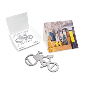 Artikel-Nr: ROP2K2101lÜberraschen Sie Ihre Handwerker mit Multifunktionstools als Schlüsselanhänger: ein ideales Geschenk nicht nur zum Geburtstag oder zu Weihnachten und nicht nur für Männer. Mit den kleinen Begleitern von ROMINOX® haben Sie die praktischsten Werkzeuge wie Schraubenzieher, Lineal oder Sechskantschlüssel immer dabei, egal ob im Alltag, im Büro oder auf Reisen. Das Key Tool Bicycle / Fahrrad mit 19 Funktionen inkl. Einkaufswagenlöser kommt in einem "Werkzeug”-Mäppchen inkl. Funktionsbeschreibung. "An die Werkzeuge, fertig, los"! Finden Sie die perfekte Kombination aus Ihrem Lieblings Keytool und Motiv-Mäppchen. Auf Wunsch auch mit Gravur und / oder im Mäppchen im Eigendesign erhältlich.
