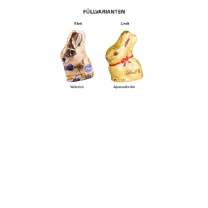 Füllvarianten: 1 Lindt Osterhase oder 1 Klett Osterhase oder 1 Teelicht und 1 Streichholzbriefchen, Ostermotiv oder 1 Teelicht und 1 Streichholzbriefchen mit Ostermotiv