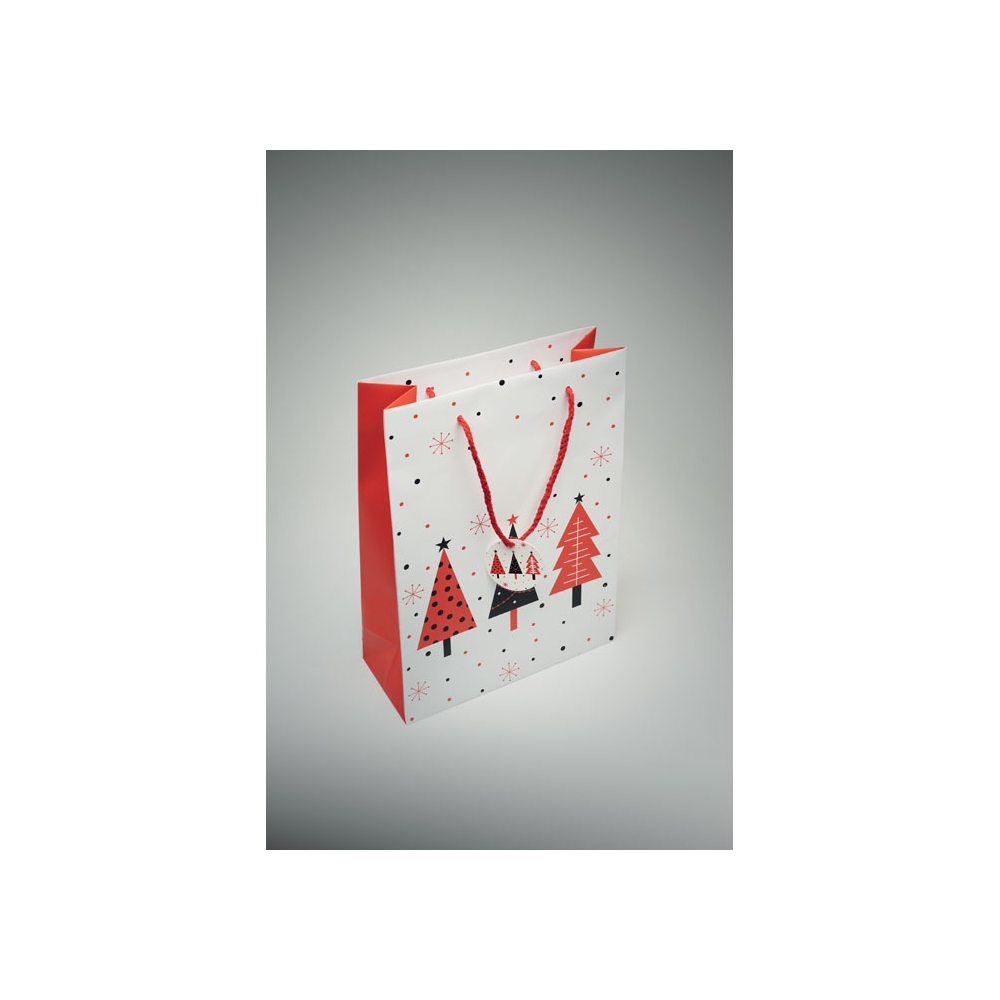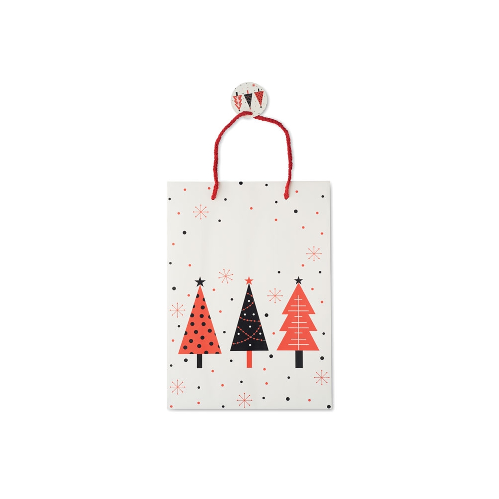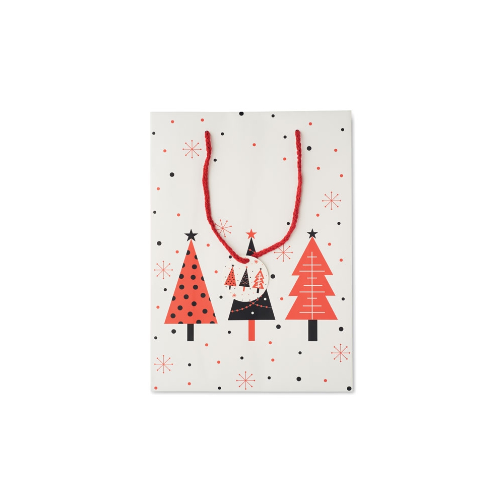 Artikel-Nr: OCBCX1563-06Große Geschenkpapiertüte mit weihnachtlichem Muster (30% recyceltes Papier) mit Anhänger. 150 g / m². FSC®-certified | FSC MIX, P5.3, FSC- C213206