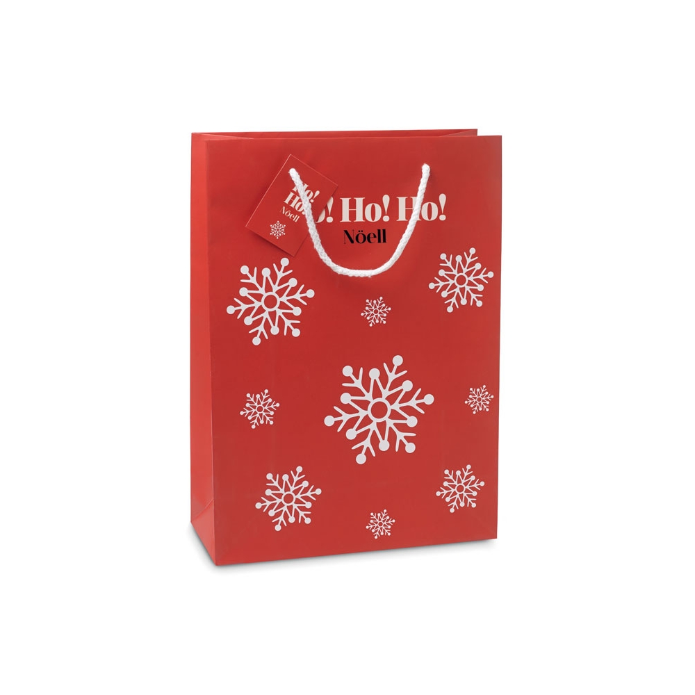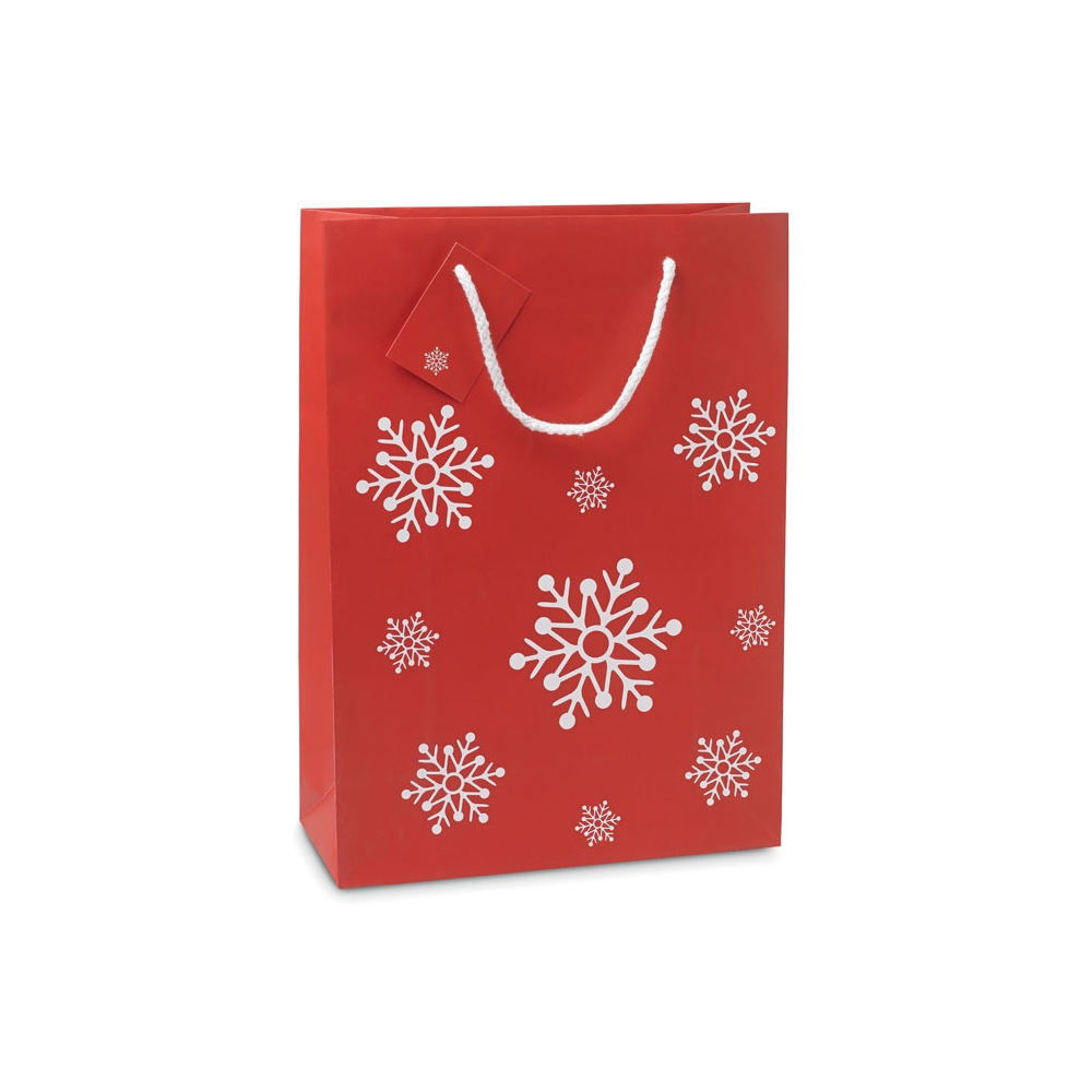 Artikel-Nr: OCBCX1415-05Elegante Geschenkpapiertüte mit Motiv ''Schneeflocke''. Inklusive Geschenkanhänger. Groß. FSC®-certified | FSC 100%, P5.3, FSC-C213206